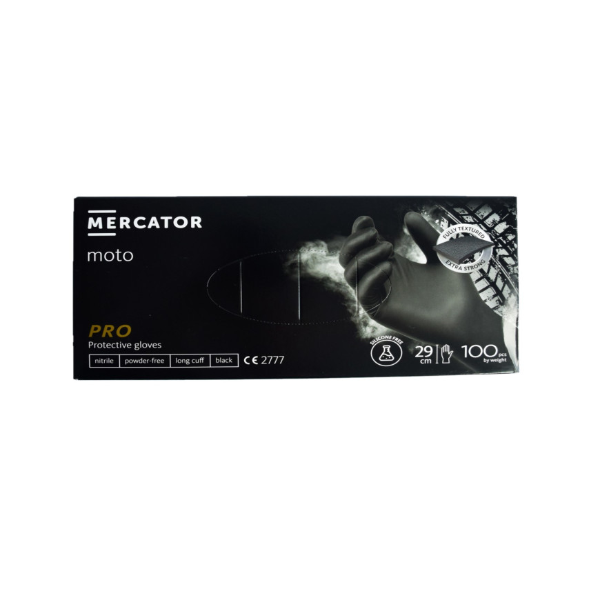 Рукавички міцні нітрилові Mercator Moto 8,6г Чорні 100 шт