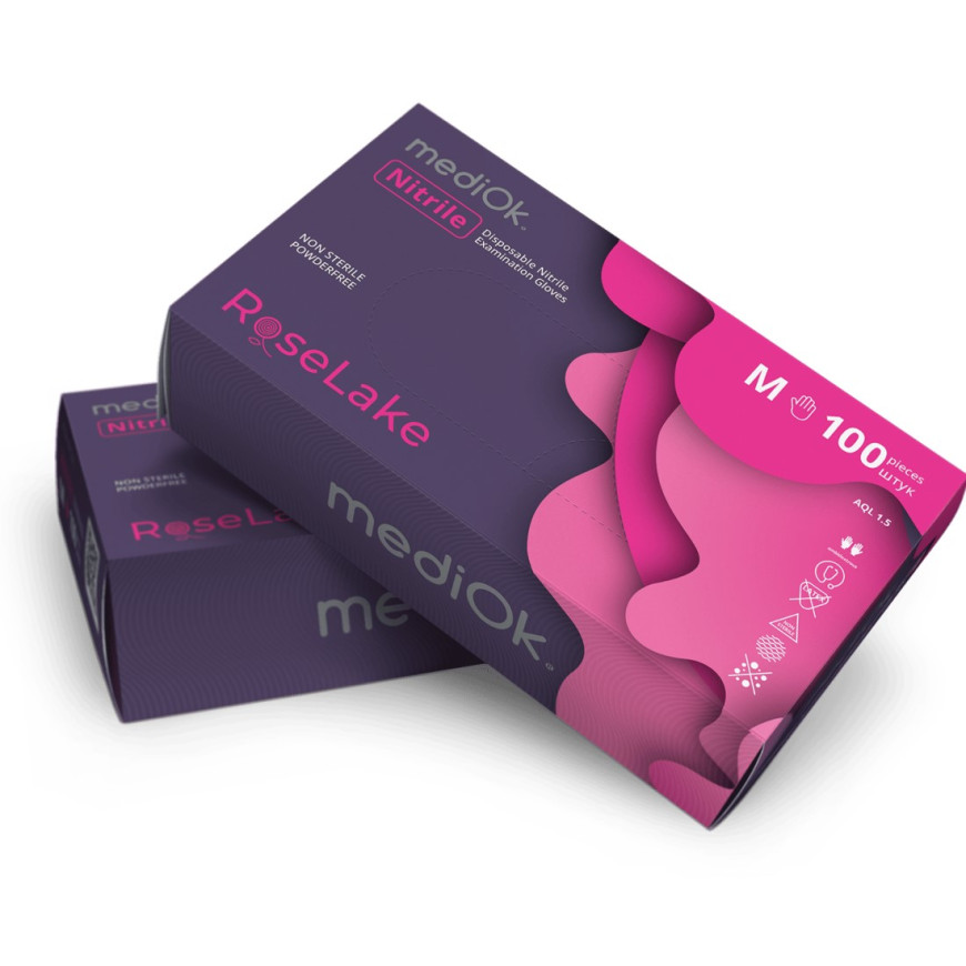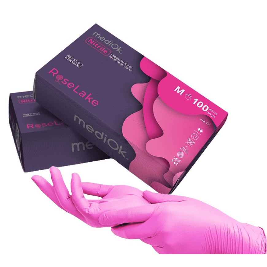 Рукавички нітрилові MediOk Rose Lake 3,5г Рожеві 100 шт