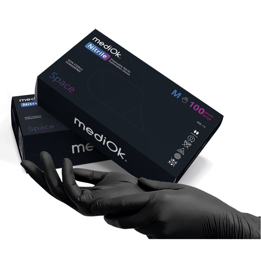 Рукавички нітрилові MediOk Space 3,5г Чорні 100 шт